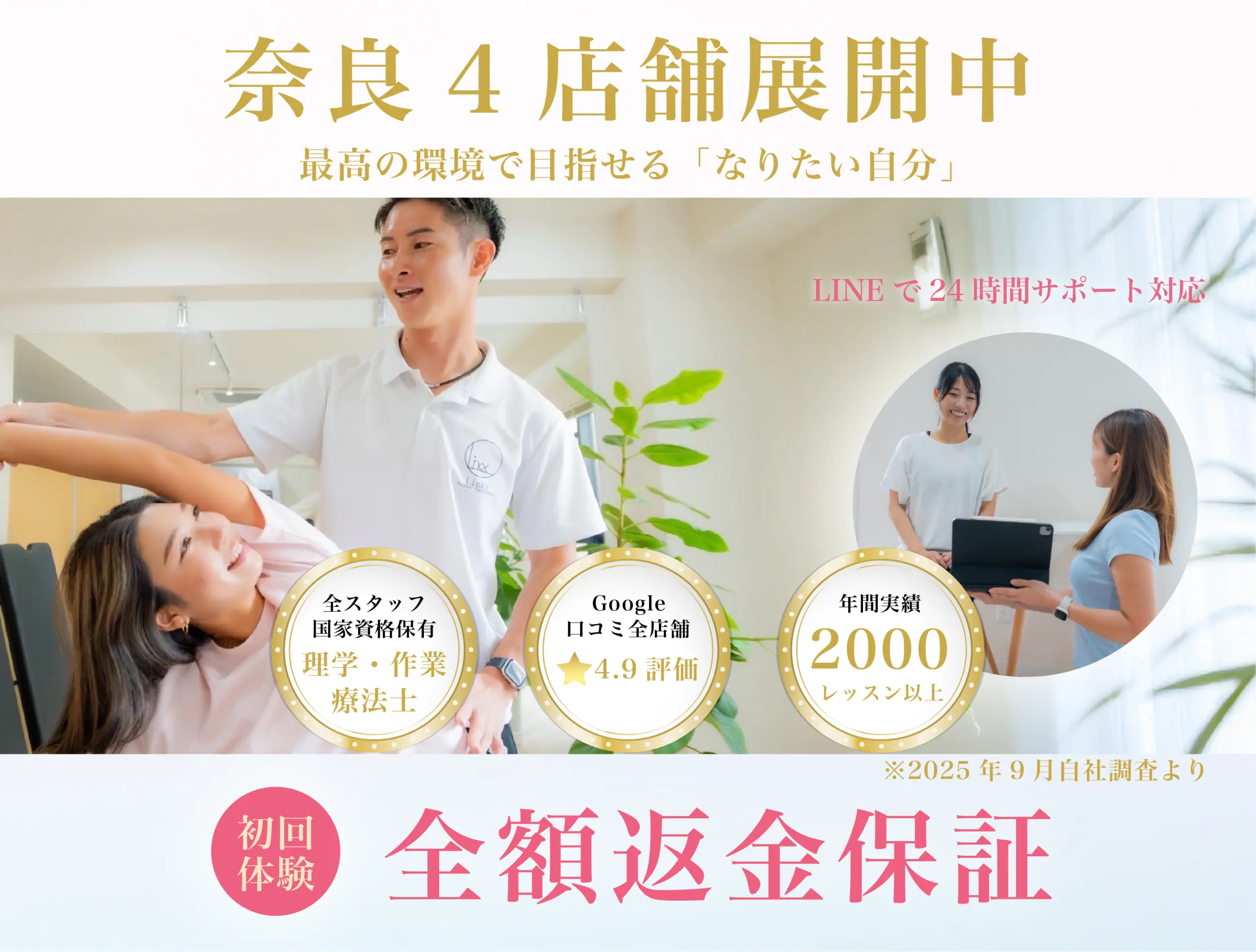 ピラティスのみではダイエット効果はでにくいですが、日々の食生活、生活習慣の改善+ピラティスを組み合わせることで効果は期待できます。食事の内容の見直しなどもサポートできますので、お気軽にご相談ください。